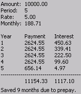 Rückzahlung, den Zinssatz und die monatliche Zahlung.